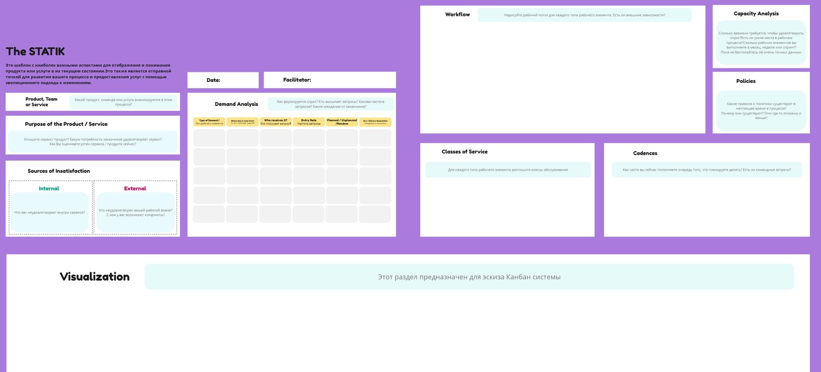 STATIK (Systems Thinking Approach to Introducing Kanban), которая позволяет шаг за шагом внедрять Канбан в реальной рабочей среде. Участники учатся проектировать доски, формулировать политики, устанавливать ограничения WIP и согласовывать правила совместной работы.